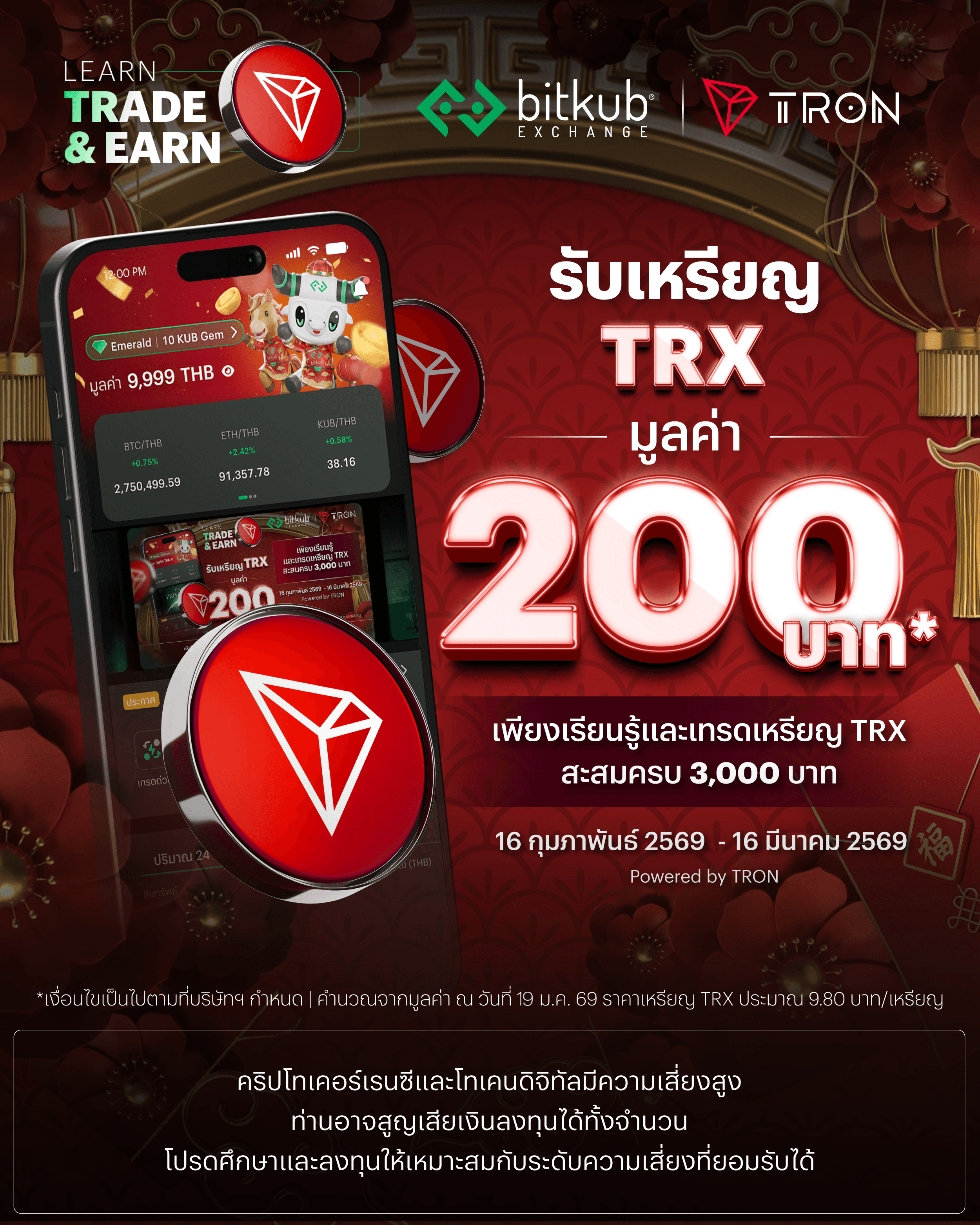 Learn, Trade and Earn TRX มูลค่า 200 บาท (16 ก.พ. - 16 มี.ค.69)